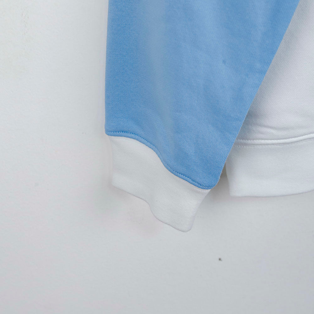 Felpa ufficiale della S.S. Lazio, collezione 2024/2025, realizzata dallo sponsor tecnico Mizuno. Questo modello per bambini è caratterizzato da una combinazione di bianco e celeste, i colori storici del club, con maniche raglan celesti che donano un look sportivo e iconico.